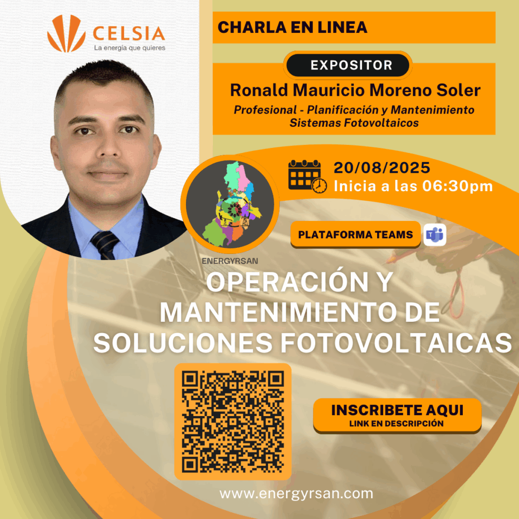 Te invitamos al evento «Operación y Mantenimiento de Soluciones Fotovoltaicas», con el experto Ronald Mauricio Moreno Soler. 1200 📅 Fecha: